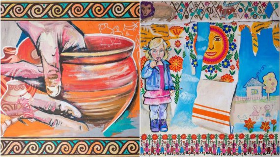Дівчата разом з досвідченими художниками створили дев'ять картин. Надихалися творчістю народної художниці Марії Примаченко, петриківським розписом і Трипільською культурою.