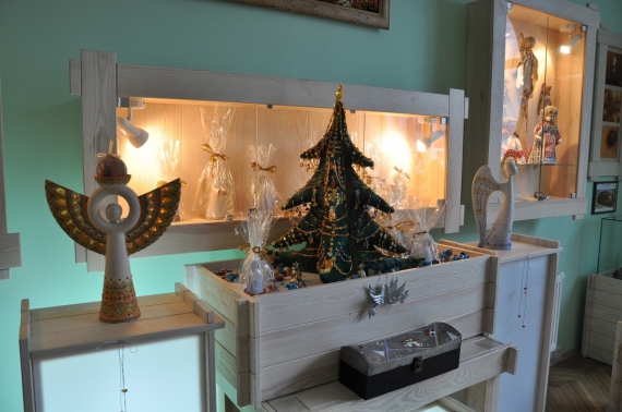 Окрім вертепу, киянка привезла до Рівного кілька янголів та півметрову ялинку, які також прикрашені бурштином. Але за кілька тижнів забере їх назад до Києва.