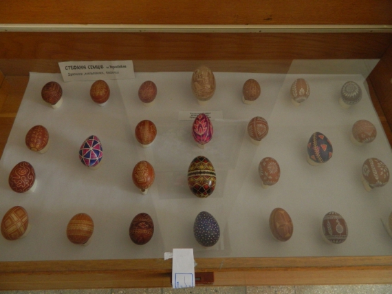 Як розповіла Gazeta.ua заступник директора музею Ольга Ваврик, писанки для виставки відібрали із власних фондів музею, а картини та ляльок-мотанок надали тернопільські художники. В експозиції є писанки на курячих, качачих, гусячих і навіть перепелиних яйцях. Причому на найменших, перепелиних, зображені одні із найдавніших візерунків – трипільські.