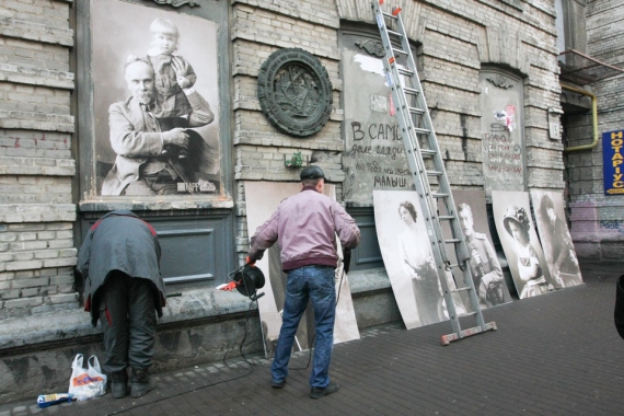24 грудня у Києві відкрили живу виставку "Зазираючи у вікна". У порожніх вікнах будинку по вул Ярославів Вал, 15 виставили фотографії, зроблені на початку минулого століття.
