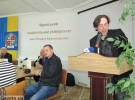 Голова Черкаської обласної Спілки письменників Валентина Коваленко пропонує Святославу Помаранцеву подарувати книгу Андруховича спілці письменників.