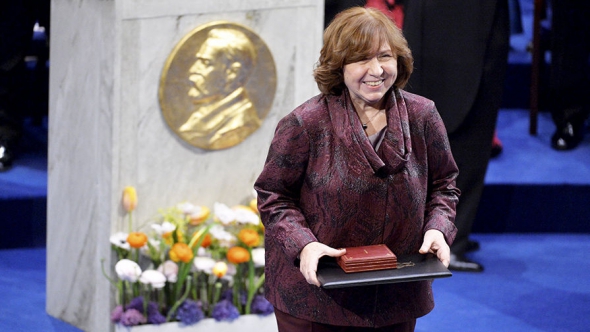 Більшість книг Алексієвич виходить у Європі. "Зараз в Росії не так багато читають серйозної літератури", - відзначила вона в одному з інтерв'ю. На перших прес-конференціях після нагородження заявляла, що "Крим і Донецьк - це окупація". Після цього втратила багато хороших друзів з Росії".