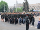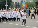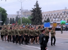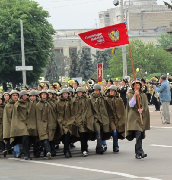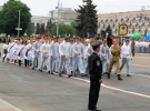 За кілька хвилин дорогою проїхав єдиний у місті військовий бронетранспортер. На його броні сиділо кілька ветеранів. Потім підійшли одягнені в синьо-жовті кольори прапороносці.