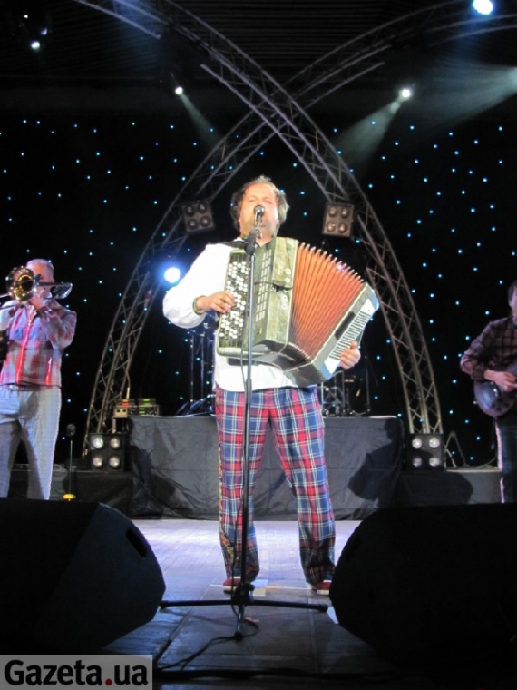Під час виступу помітно гіпс на двох пальцях правої руку Сергія Шамрая, який грає на трубі.