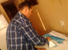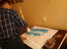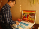 "Цієї техніки навчила мене моя учениця Світлана, яка займалась нею в школі в Санкт-Петербурзі, - каже Олескандр Петрович. - Роботи мене вразили насиченістю і яскравістю кольорів, дуже реалістичні виходять. Певно через те, шо малюються воском. Адже навіть копії знаменитостей найбільш правдоподібні воскові."