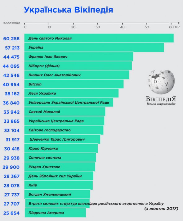 В середньому за 2017 рік кожен місяць створювалося 7247 статей, які в цілому збирали по 47 мільйонів переглядів.