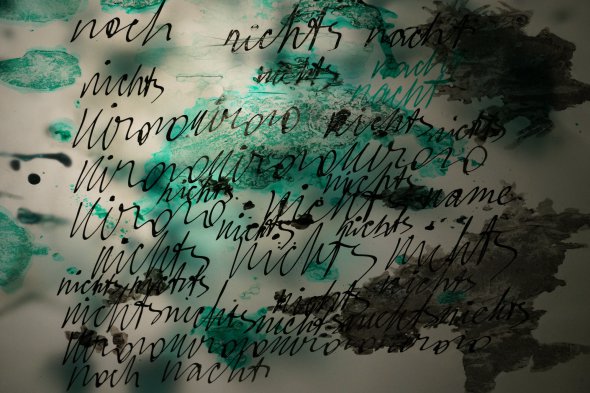 Слова, які художниця вихоплює із декламованого вірша - це маркери, які допомагають слухачам відчути різні емоції. Загострюють їх ніби лезом.