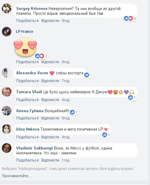 Сергій Кривонос написав: "Неймовірна LP? Вона взагалі з іншої планети. Просто вибух емоцій був там".