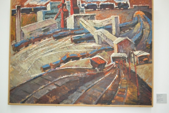 На полотнах переважає соціальна тематика — будівництво заводів, похмурі індустріальні пейзажі, натруджені руки робітників.