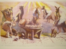 "Кожен з цих малюнків використовується на три розвороти книжкові. На одному розвороті був текст та третина ілюстрації. Це один з видів естампу. Беремо мідну дошку, вона шліфується, полірується, ґрунтується спеціальним лаком, по цьому лаку видряпується зображення голкою, потім травиться у кислоті. Залежно від того, скільки часу травимо, різна глибина ліній виходить. Різного тону можна досягти. Робив гравюру на п'яти різних дошках: кожну окремо забивав фарбою. Під пресом фарба з форми переходить на папір. З однієї мідної форми можна робити до ста відбитків. Потім вона зношується".