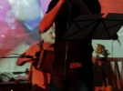 І все це супроводжується химерною інсталяцією від художньої студії "Антресоля". Відеоряд, що проектується на музикантів, зроблений за принципом калейдоскопу - тут є і візерунки яблук, і мальовані обличчя, і осіннє листя.