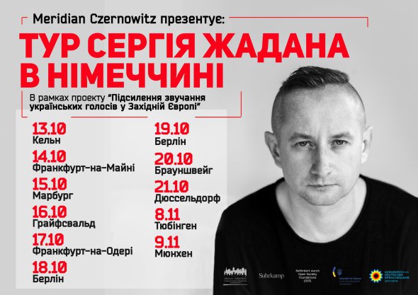 Тур Сергія Жадана організовує Міжнародна літературна корпорація MERIDIAN CZERNOWITZ. Вона видавала роман "Інтернат". Презентації в країнах Європи відбуватимуться в рамках проекту "Підсилення звучання українських голосів у Західній Європі" за підтримки Open Society Foundations (OSF).