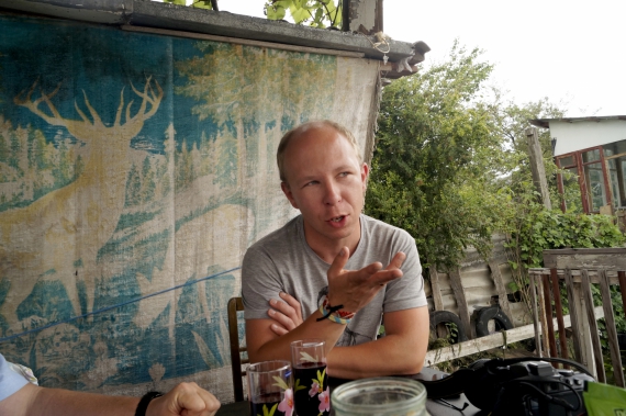 "Перепрошую, що говоритиму білоруською. Але не зустрічав жодного україномовного українця, який її не розуміє. Так само і жодного білоруськомовного білоруса, який не розуміє української", - сказав перед виступом білоруський письменник Альгерд Бахаревіч. У неділю, 29 травня, на дискусії "Острів Європа" у галереї "Інтершик" прочитав уривок зі свого нового роману "Белая муха, забойца мужчын". Книжку критики вже назвали першим білоруським феміністичним романом, що дуже розважає автора. Це історія про жіночу банду, яка захопила один із замків у сучасній Білорусі і три дні тримала його у облозі.