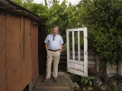 Через зливу виступ Прохаська перенесли із саду Коцюбинського до світлиці музею. Поки переналасштовували апаратуру, публіку розважав директор Музею Коцюбинського Федір Панчук - людина багатогранна. Серед його численних талантів - також живопис та вирізання силуетних портретів. Цього разу для портрету позував Прохасько.