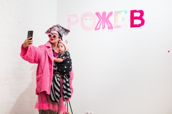 Часто переміщаюся по країні. Роблю "Рожеву виставку" у місті, де живу. Найперше вона відбулась у Хмельницькому. Мені було важливо, щоб виставка почалась не з великого міста. Бо є згубна практика, коли зі столиці привозять роботи художників, на яких нібито треба орієнтуватися. Встановлюють тренди. Я ж зробила навпаки. Щоб виставка почалась з провінційного музею та подорожувала Україною. Залучає різних за віком, досвідом та практикою митців. У київській версії є вже відомі закордоном та дебютанти. Рожевий колір їх урівнює. Немає крутіших чи авторитетніших".