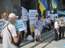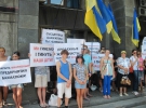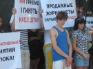 Мітингувальники тримають в руках плакати "Фашизм не пройде! Макарів не газова камера", "Ціна яєць - здоров'я нації", "Продажні журналісти переховують правду" та інші.