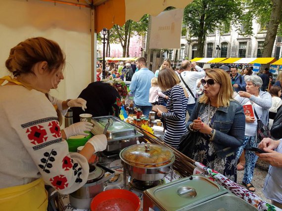 Українці, одягнені у вишиванки, приїхали на фестиваль з різних куточків Нідерландів. Увесь фестивальний день господині готували на кухні і частували гостей. Основною стравою цього року були голубці: традиційні з рисом і м'ясом, з гречкою та грибами, з пшоном та беконом, і навіть з тертою картоплею і з грибною підливою. Також пропонували деруни зі сметаною. Не обійшлося без борщу та узвару. Крім того, гості могли придбати й інші українські ласощі: карпатський мед, овочеву консервацію, сало, ковбаси, печиво, цукерки та інші солодощі, які спеціально привезли з України. Серед напоїв були квас, пиво, настоянки, горілка, медовуха.