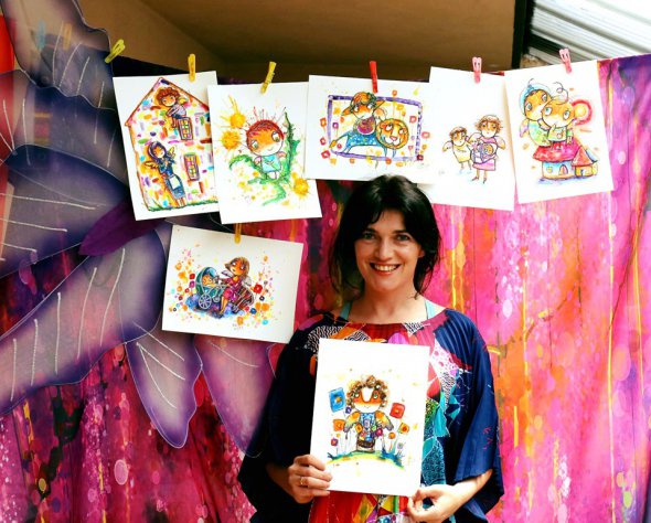 Коли приїжджала в гості у Чернівці, то організували акцію. Малювала перехожим усміхнених яскравих ангелів посеред вулиці. Назбирали 50 тисяч гривень.