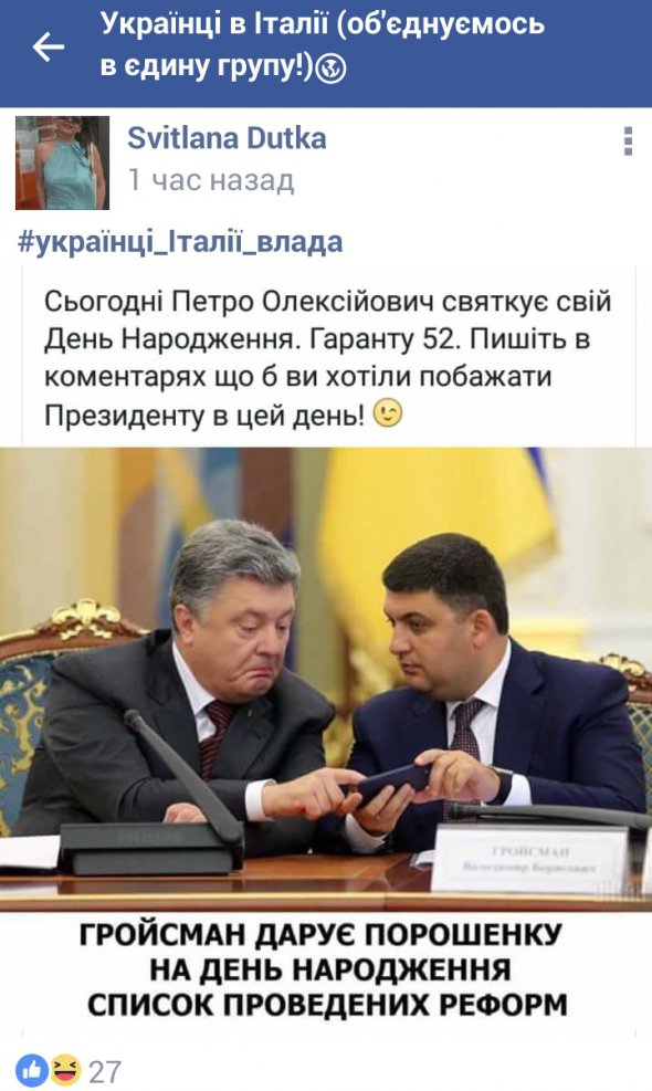 Українська діаспора з Італії, Франції, Чехії та інших країн не залишила це без уваги у Facebook і щиро побажала президентові розуму і мудрості, щоб нарешті закінчити війну.