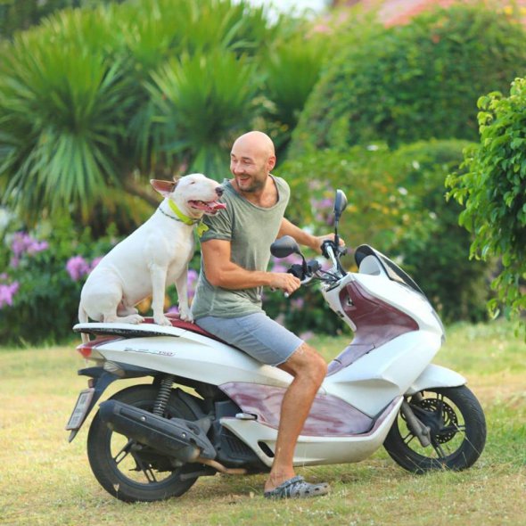 "Коли подорожували вперше, залишили свого собаку в батьків. Він трагічно загинув. Вирішили, що нового пса-бультер'єра Жору скрізь братимемо із собою. За місяць писали листа у ветеринарний контроль Таїланду про те, що хочемо приїхати із собакою. Збирали довідки з переліком щеплень. А також робили дозвіл на те, що беремо із собою собаку. Його потрібно було підтвердити в аеропорту".