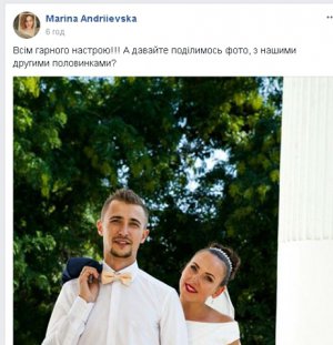 Своєрідний інтернет-флешмоб започаткувала Марина Андрієвська, яка виклала у facebook весільну фотографію зі своїм чоловіком.