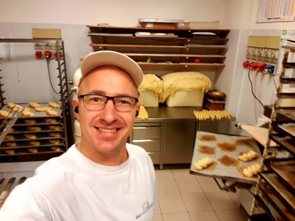 З роботою поміг мамин знайомий. Влаштували у пекарню до сеньйора Де Паріса Карло. Дав мені випробувальний термін 3 місяці. Мені все було цікаво. Все до дрібниць повторяв за сеньйором. По професії я не пекар, а агроном з червоним дипломом.