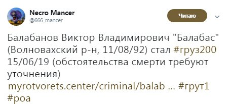 Він поповнив "бригаду 200" 15 червня. Однак обставини його смерті поки невідомі, повідомляє блогер під ніком Necro Mancer в Twitter.