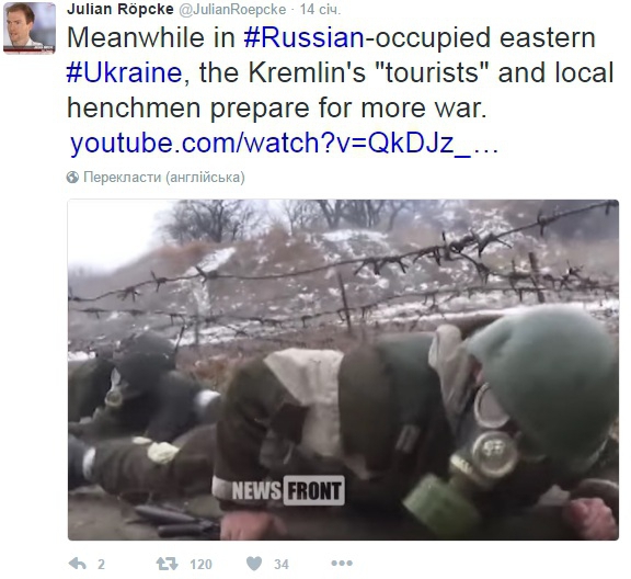"Тим часом в окупованій Росією Східній Україні, кремлівські "туристи" та місцеві посіпаки готуються до війни", – зазначив він.