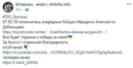 "200 бригада 07 травня поповнилася черговим бійцем Олексієм Іващенком із Дебальцевого", - сказано в повідомленні.