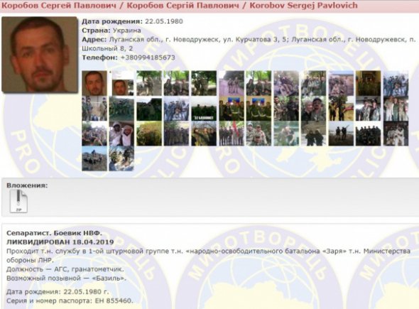 Був гранатометником автоматичного гранатомета штурмової групи бандформування "Зоря", за даними бази "Миротворець".