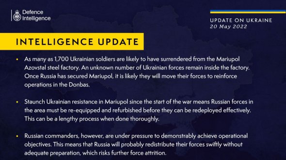 Постійний опір українців у Маріуполі з початку війни означає, що російські сили в цьому районі повинні бути переоснащені та відремонтовані, перш ніж їх можна буде ефективно передислокувати. Це тривалий процес, якщо виконувати його ретельно.
