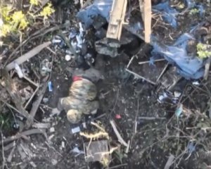 На відео, тривалістю до хвилини, показано, як дрон атакує позицію росіян десь у посадці. Після цього з бліндажа виповзає ймовірно поранений окупант.