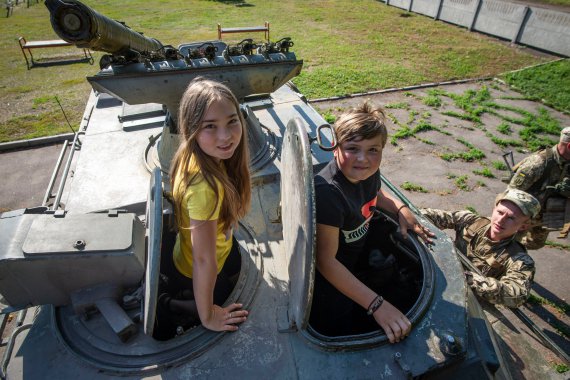 Військові показали дітям техніку та озброєння. Охочих катали на байках, дали поміряти засоби захисту, вчили такмеду. Також влаштували частування й подарували книгу про український Донбас.