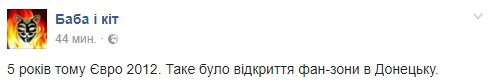 "5 років тому Євро 2012. Таке було відкриття фан-зони у Донецьку", – йдеться в повідомленні.
