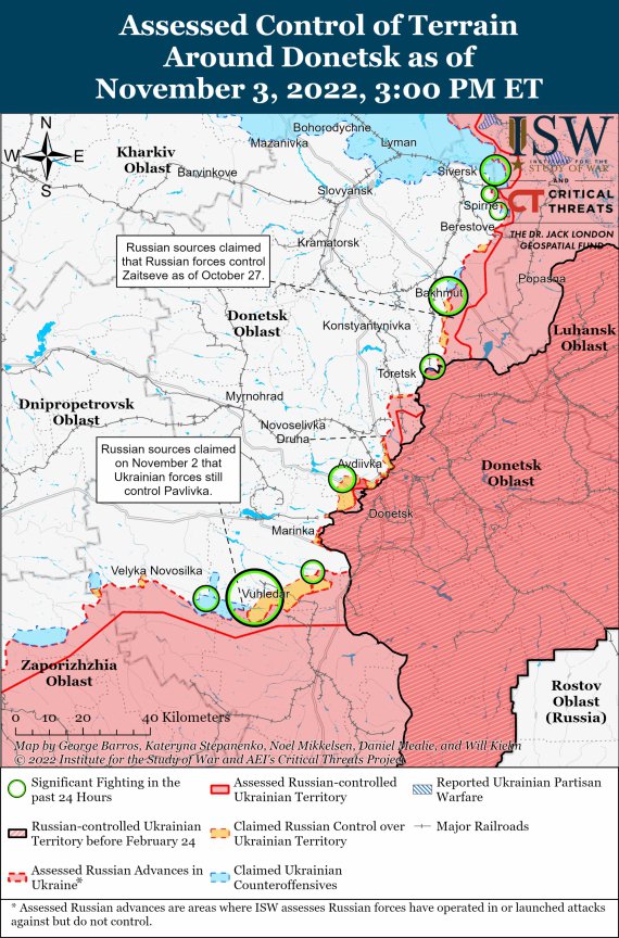 Значних успіхів в окупантів нема, повідомив 4 листопада американський Інститут вивчення війни ISW у свіжому звіті. Росія втрачає на Донеччині особовий склад.