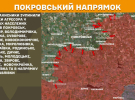 На Покровському напрямку наші захисники зупинили 52 атаки агресора у районах населених пунктів Покровськ, Попів Яр, Володимирівка, Бойківка, Суворове, Котлине, Новоекономічне, Муравка, Миролюбівка, Миколаївка, Родинське, Сухецьке, Дачне, Промінь, Молодецьке, Лисівка, Звірове, Удачне, Новоукраїнка, Олексіївка та в напрямку Новопавлівки.