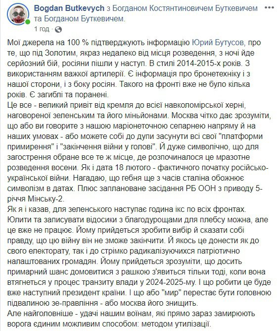Ранок 18 лютого для українців почався з тривожних новин - бойовики пішли у наступ біля Новотошківського, Оріхового, Кримського, Хутора Вільного, що поблизу Золотого.
