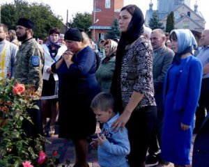 Під час вшанування памяті загиблого під Іловайськом українського бійця його син тримав батьків орден.