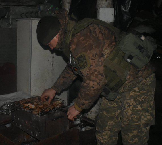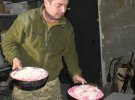 Готували все за рецептами мам і бабусь. Хтось чистив картоплю, хтось – буряк. Кухня у бійців розташована в бліндажі - підземному укритті.