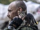 Майже у кожному бліндажі, будівлі чи блокпості в зоні АТО на Донбасі живуть коти, собаки, пташки чи навіть гуски з єнотами.