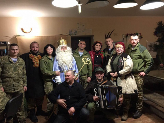 Волонтери поїхали в АТО, щоб привітати наших бійців із Новим роком і Різдвом. Громадські активісти, артисти та капелани разом із бійцями співали колядки та патріотичні пісні.