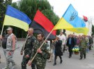 Після короткого спілкування присутні колоною вирушили до скверу Слави, де розташований пам'ятний знак учасникам АТО.