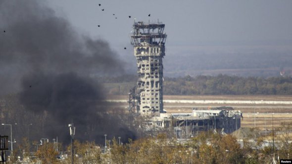 Під час запеклих боїв із з російськими окупантами 13 січня 2015 року обвалилася диспетчерська вежа Донецького аеропорту. Будівлю обстрілювали з танків та артилерії.