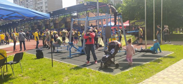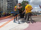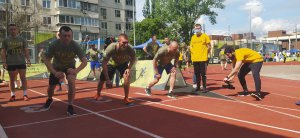 В іншій частині Деснянського стадіону стронгмени з Національної поліції, Міністерства з надзвичайних ситуацій, Держприкордонслужби, Нацгвардії та ЗСУ змагаються між собою. Чоловіки перекидають на швидкість 300-кілограмові шини, підіймають величезні металеві споруди й важкі штанги.