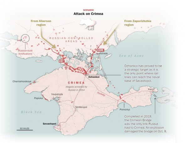 Одним із ключових завдань України та ранньою ознакою успіху буде руйнація так званого "сухопутного мосту" між материковою Росією та окупованим Кримом, перекриття найважливіших шляхів постачання російських військ у Запорізькій області та ізоляція російських баз на півострові.