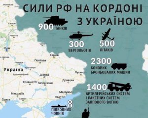 Нашим військовим, судячи зі всього, святкувати доведеться у повній бойовій готовності. Усього Росія зібрала проти України близько 90 тис. військовослужбовців і найманців, 850 танків, понад 1600 одиниць бойових броньованих машин, 1500 одиниць ствольної і реактивної артилерії, 6 оперативно-тактичних ракетних комплексів (на Донецькому напрямку), а також понад 200 одиниць літаків і вертольотів", - написав Клименко.