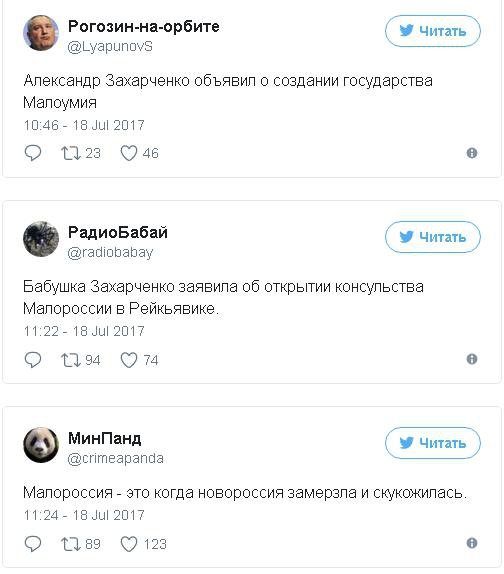 Захарченко оголосив про створення Малоросії. Користувачі соціальних мереж шквалом жартів і тролінгу відреагували на цю заяву ватажка ДНР.