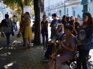 Біля лавочок поставили ящики з водою, щоб всі, кому треба, могли взяти собі пляшечку. Окрім цього на місці чергує карета "швидкої допомоги".