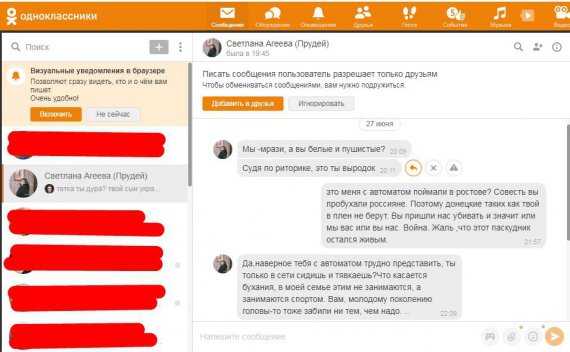 Каже, що не встиг зробити скріншот цього листування через те, що росіянка закрила свій профіль.