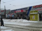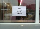 На фото видно, що на стовпах та інших місцях в місті висять листки. На них надруковані вказівники і написи "МТС ловить там". Вочевидь, таку ж табличку використовують з рекламною метою і кав'ярні, що потрапили в зону покриття.